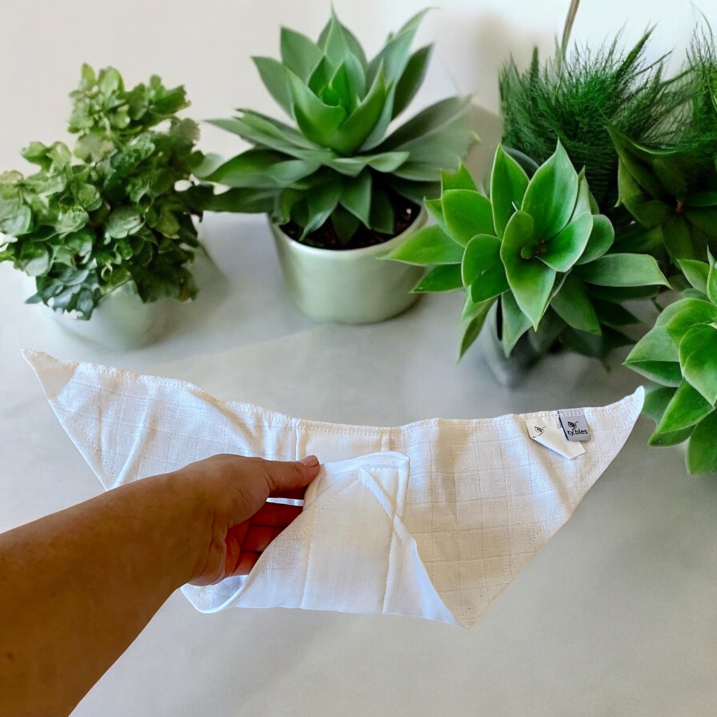 Boosteren kan anvendes både under indsatsen for at øge sugeevnen og direkte på indsatsen, tæt på barnets hud. Dette er særligt praktisk, når der er tykkere afføring, da du blot kan skylle boosteren i stedet for at vaske hele indsatsen. Stoffets struktur gør det lettere at fjerne snavs end fra bambusfrottéindsatser.